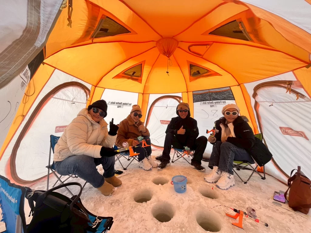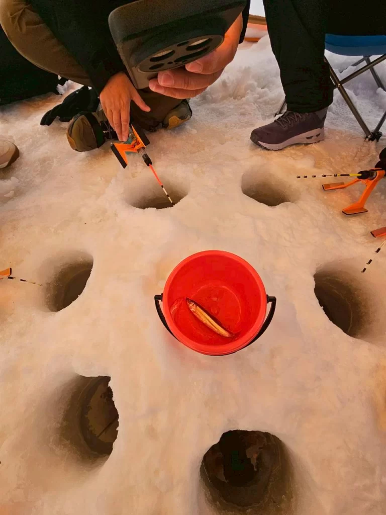 • ลานกิจกรรมตกปลาน้ำแข็ง การตกปลาวะคะซะงิ จะมีวิธีตกที่แตกต่างไปเล็กน้อย คือจะตกจากพื้นน้ำแข็ง โดยทุกท่านจะทำการเจาะรูที่พื้นน้ำแข็งบนทะเลสาบ และหย่อนเบ็ดลงไปในรูเพื่อตกปลาวะคะซะงิ (wakasagi) ที่ว่ายน้ำอยู่ใต้ผืนน้ำแข็ง